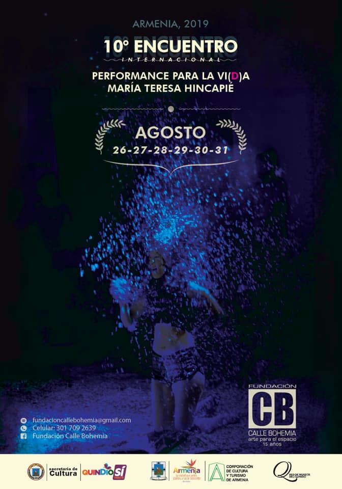 Je suis régulièrement invitée en Colombie au Festival Performance para la vida Maria Teresa Hincapié (Armenia), au Festival International d’Art Contemporain de Manizales, et en tant qu’artiste-formatrice à l’Université des Beaux Arts de Caldas à Manizales en Colombie (octobre 2016-octobre 2017, septembre 2019, novembre 2020 session online).
