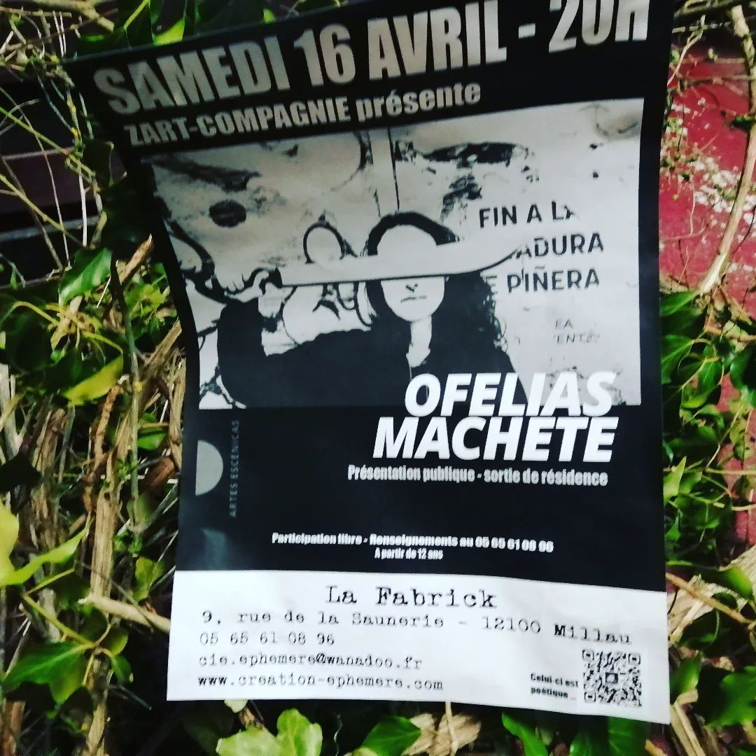 Ofelias Machete est un projet de co-création et d’écriture performative en contextes, entre Zart compagnie et Encuentro Escenas en Contextos conçue dans une rencontre de trajectoires croisées.