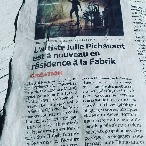 En partenariat avec la Communauté de Communes CAUVALDOR (Causses et Vallée de la Dordogne), Julie Pichavant et Alejandra Saez réalisent « RESURGEE » un film inspiré de la création Ofelias Machete présenté dans le cadre du Festival d’Art contemporain Résurgence VI, Profonde Intuition du 30 septembre au 27 novembre à Souillac dans le Lot. Commissaire: Valentine Boe. Réalisation: PSR Production.