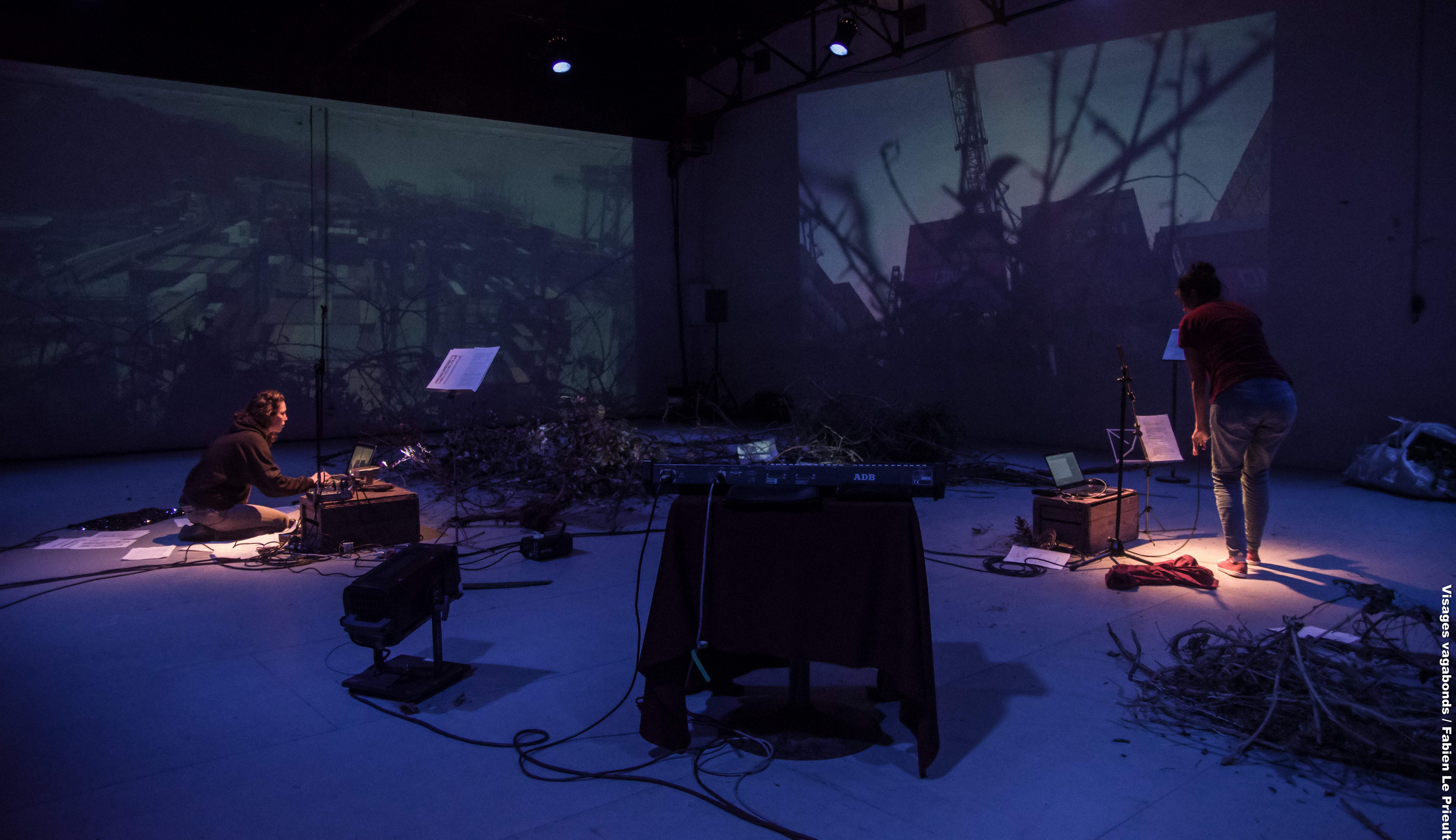 Crédit Photo : Francisca Bono (Parque Cultural Valparaiso déc 2021), Vincent Dubus (résidence La Fabrick avril 2020),Cécile Flahaut (résidence la Fabrique avril 2022), Christophe Hauguel (résidence Les Bazis Arts Vivants en Couserans avril 2022), Visages Vagabonds – Fabien Le Prieult (Ring Scène périphérique – mai 2022).
