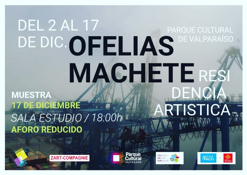 Après une résidence d’écriture au Parque Cultural – Ex Carcel de Valparaíso, « Ofelias Machete » a été présentée dans le cadre de la programmation du mois de commémoration de la lutte pour les droits des femmes le vendredi 5 mars 2021 à Espacio-Oculto à Laguna Verde, lors d’une lecture en ligne dans le cadre du démontage de « Anima Sola » de la compagnie La eMe de México, Escena de emergencia, dirigée par Guillermo Navarro, réalisée le lundi 8 mars à Mexico, puis le mercredi 10 mars au Parque Cultural – Ex Carcel de Valparaíso, avec également une lecture performative le mercredi 18 mars retransmise par le Parque Cultural – Ex Carcel de Valparaíso – Chile et lors du« 1 Festival Ana Mendieta, Mujeres-cuerpos en acción » Ibagué – Colombie 2021, organisé par la Compañía de Arte Sariri.