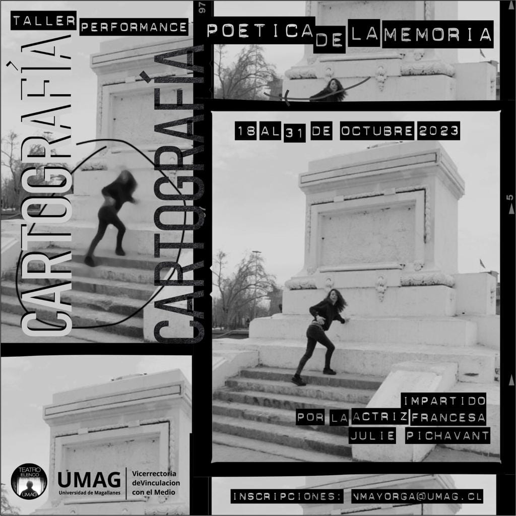La dramaturga y performer francesa Julie Pichavant desarrolló recientemente un intenso trabajo en la Región de Magallanes y Antártica Chilena, con un taller y presentaciones en varias localidades. La artista realizó un taller abierto a la comunidad el cual se denominó “Cartografía Poética de la Memoria”, el cual tenía como línea de investigación y cocreación la búsqueda de la intimidad en la inmensidad, derivando en la pregunta ¿cuál es tu paisaje interior y exterior? Partimos desde el cuerpo y activamos su cartografía propia, partiendo desde el cuerpo y realizando una práctica física, para generar poéticas propias mediante la activación de las memorias”, detalló la artista. Este taller se llevó a cabo en las instalaciones de la Universidad de Magallanes, con el apoyo del Grupo de Teatro UMAG y finalizó con una intervención en el Cerro de la Cruz.