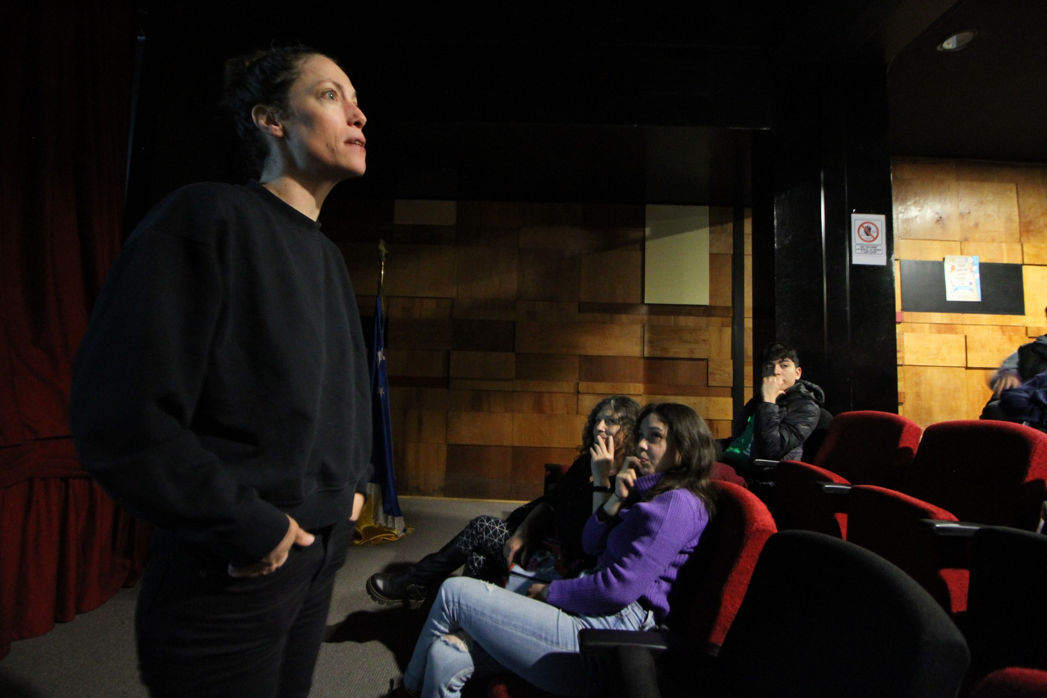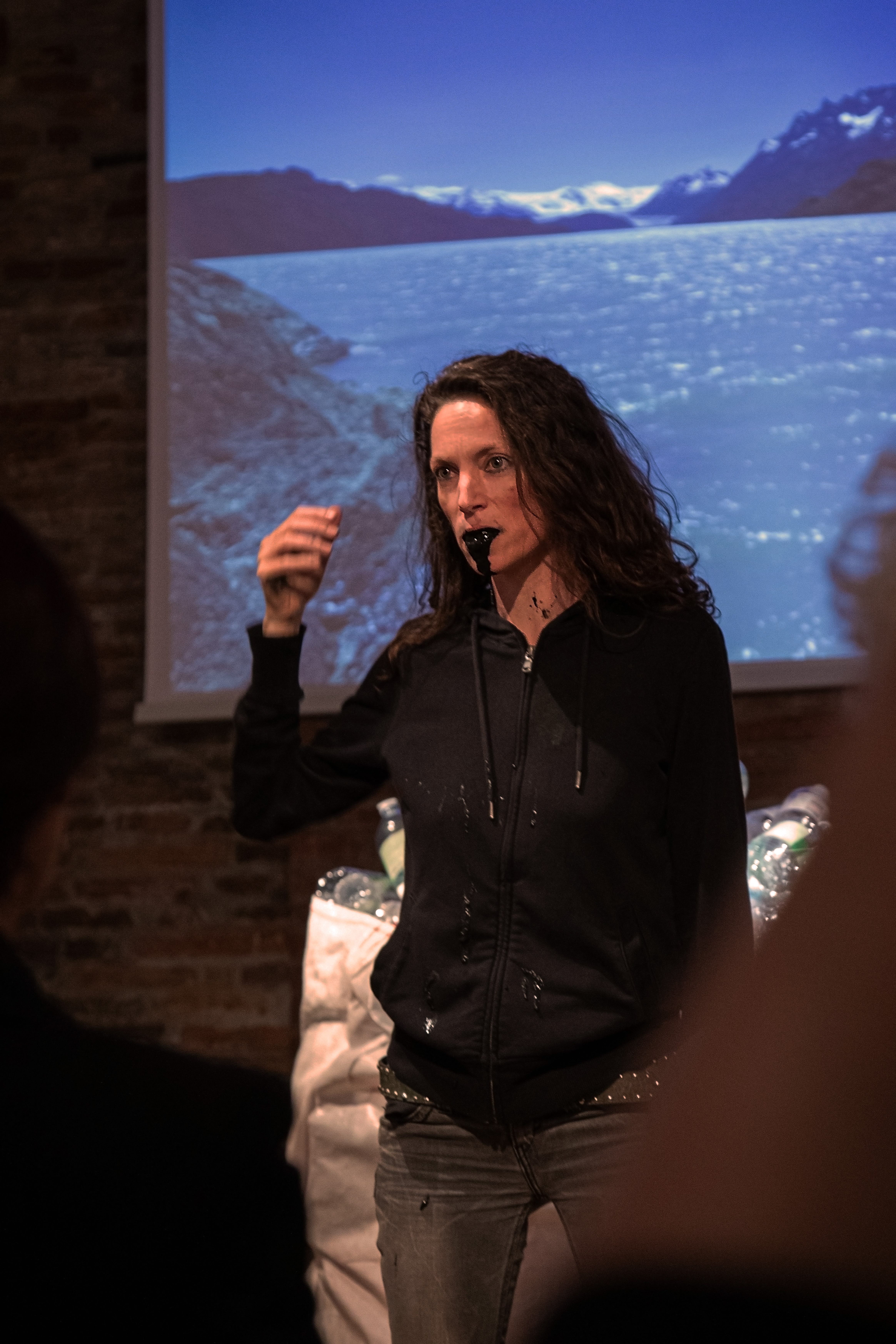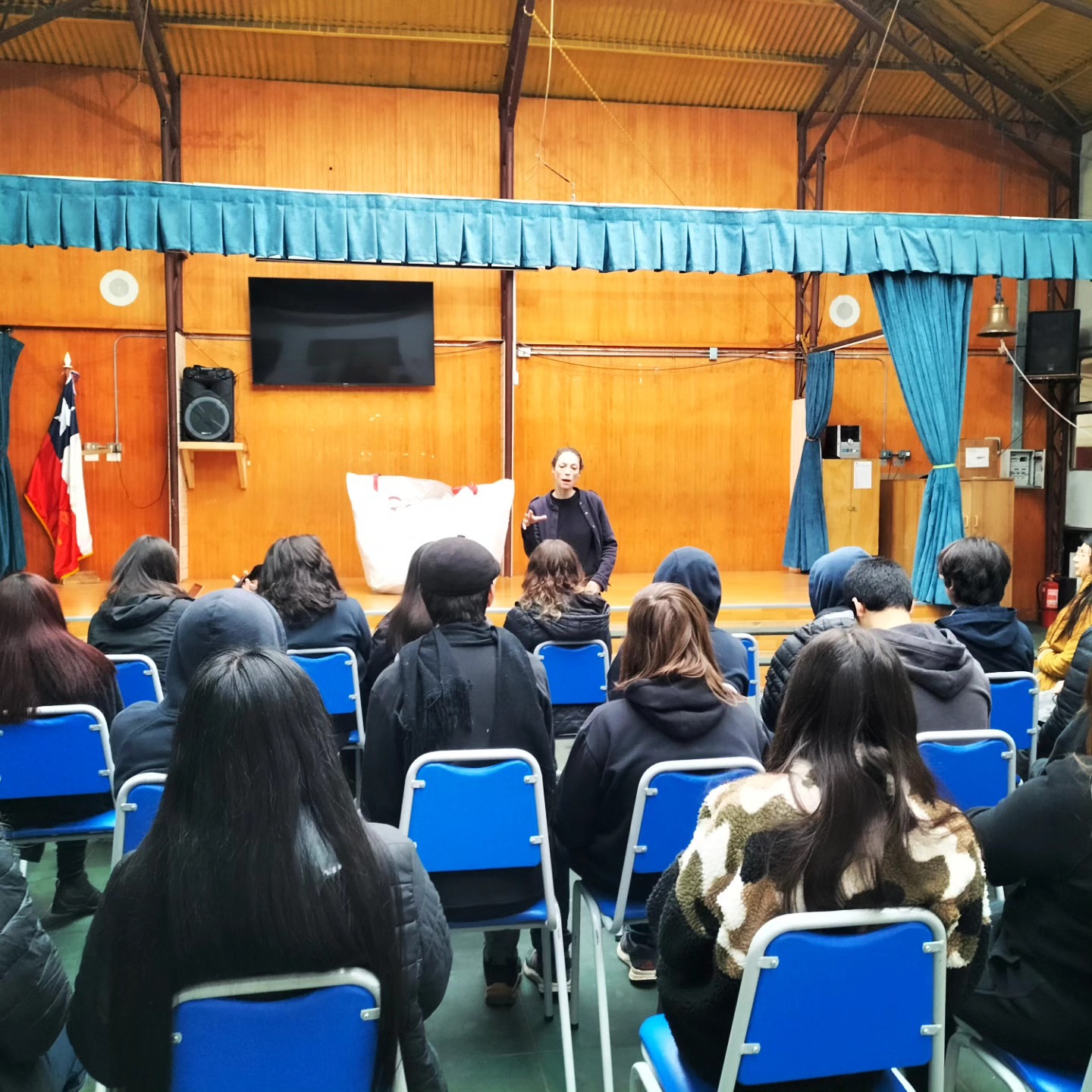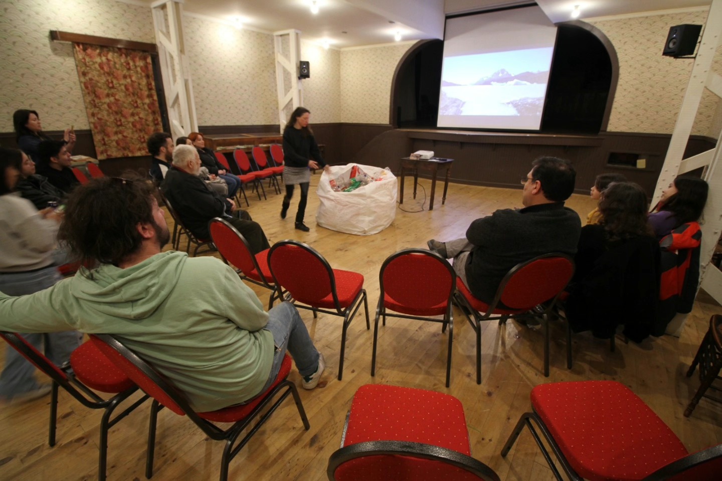 La artista francesa Julie Pichavant presento en el Teatro « Cinema Porvenir » y en el Liceo Polivalente “Hernando de Magallanes” su obra performatica « APNEA », dedicada a la crisis medio ambiental planetaria. Esta presentación se hizo en el marco de la residencia de arte y ciencia « TIEMPO PROFUNDO » en Porvenir, con participación de artistas, estudiantes e investigadoras de la UMAG. @Rafael Cheuquelaf Bradasic