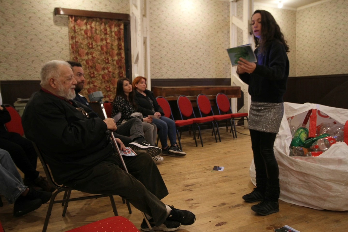 La artista francesa Julie Pichavant presentó en el Edificio de Rectoría « Roberto Bravo » de la UMAG su performance titulada « APNEA », dedicada a la crisis medio ambiental planetaria. Asistieron el Rector José Maripani y funcionarios administrativos de la casa de casa de estudios. En torno a un saco lleno de botellas plásticas, la actriz y escritora expuso un monólogo en que tocó diversos aspectos de su relación con el mar y de su preocupación por la masiva contaminación por microplásticos que afecta a los océanos. La pieza « APNEA » fue escrita en 2021 en el marco de la residencia artística « EMERGENCIAS DEL BENTOS », realizada por la UMAG con el apoyo del Goethe Institut y el Instituto Francés de Chile y que contempló un viaje a Puerto Williams junto estudiantes y las artistas Michelle Marie Letelier y Karen Reumay.