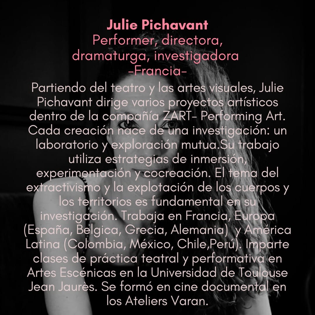 La escritora y artista escénica Julie Pichavant se encuentra en nuestra ciudad para dictar un taller denominado “Laboratorio de Performance & Detonantes Poéticos”. Este se desarrollará los próximos días 27, 29 y 30 de Agosto de 2024 en la Universidad de Magallanes. Su propósito será el experimentar una investigación arqueológica y corporal de nuestras percepciones singulares y colectivas, y cómo nos afectan los climas y geografías en paisajes extremos, buscando construir un diálogo entre realidades e imaginarios, estados del cuerpo y el espacio. Las sesiones se realizarán en la Sala 1 de la Facultad de Humanidades (Campus Central UMAG). Para inscripciones se debe escribir al correo nmayorga1@gmail.com (cupos limitados).